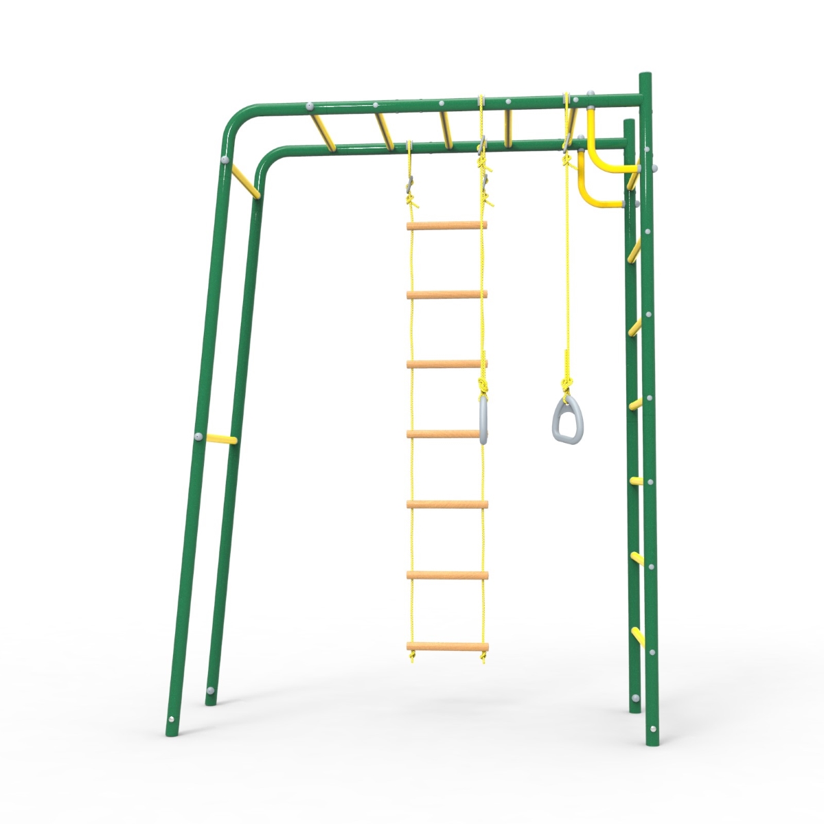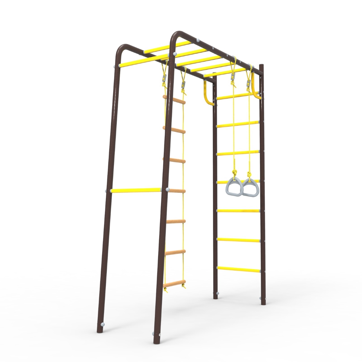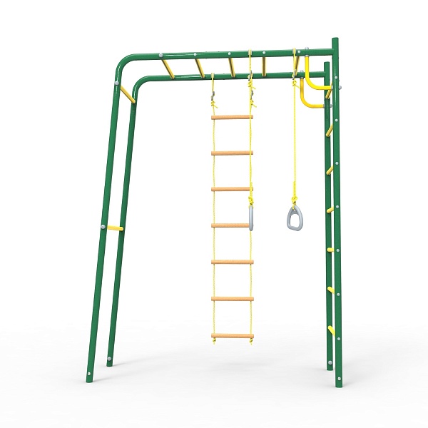 Этот детский спорткомплекс представляет собой достаточно компактную конструкцию, для размещения которой на участке понадобится совсем мало места. Достаточно лишь найти ровный и свободный прямоугольный участок земли размером всего 1,7 х 2,6 метра.