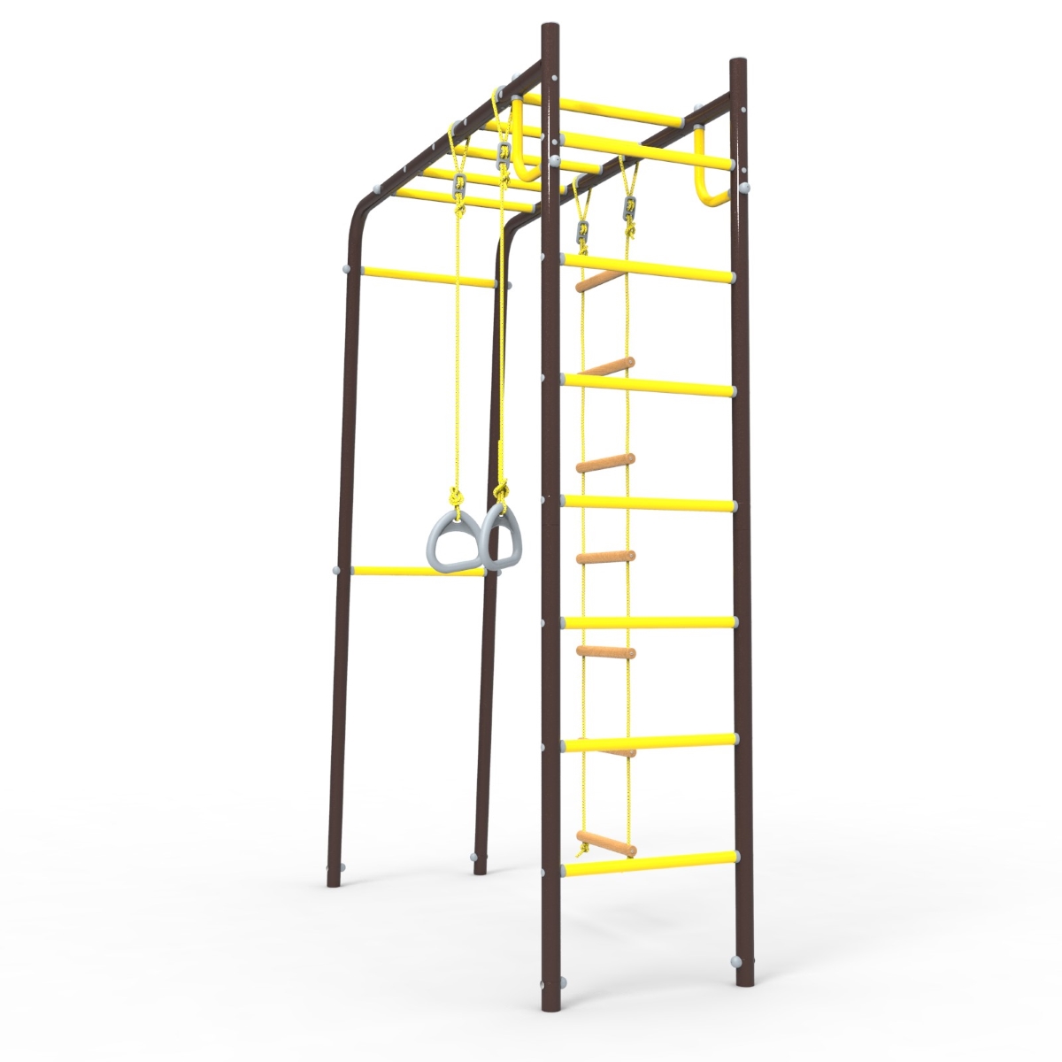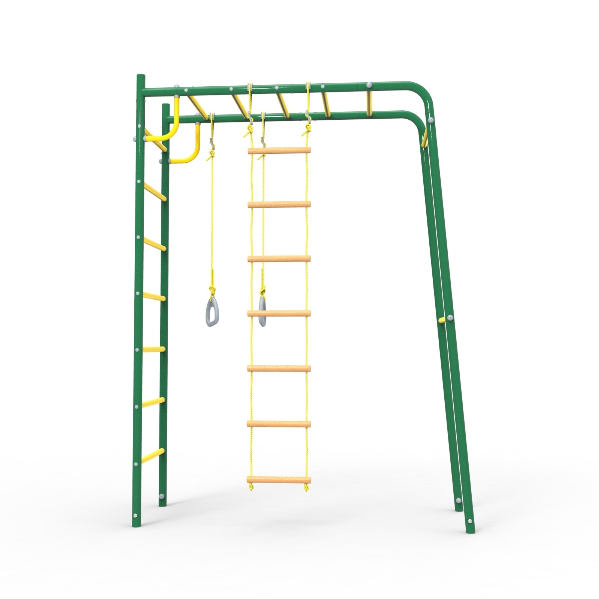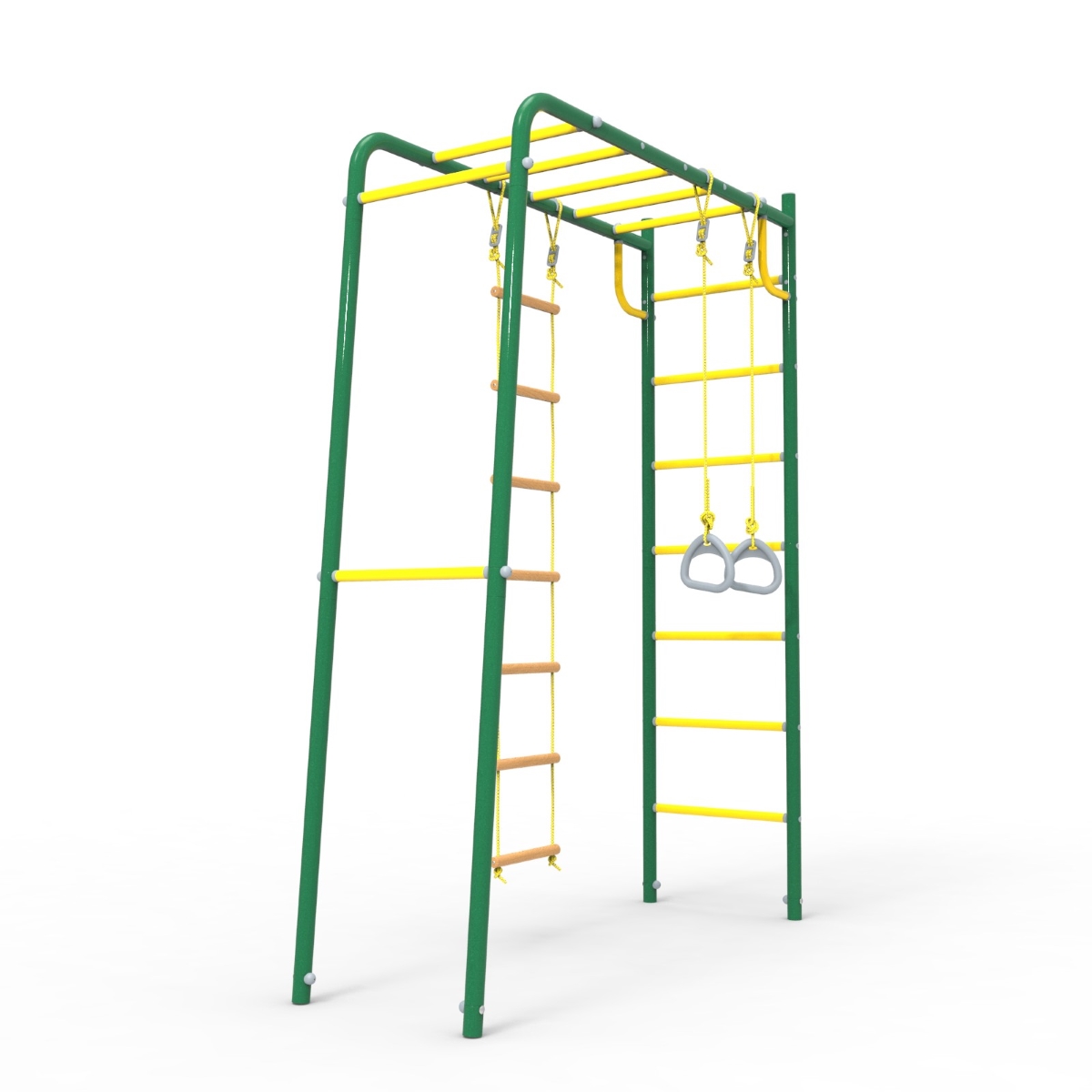 Этот детский спорткомплекс представляет собой достаточно компактную конструкцию, для размещения которой на участке понадобится совсем мало места. Достаточно лишь найти ровный и свободный прямоугольный участок земли размером всего 1,7 х 2,6 метра.