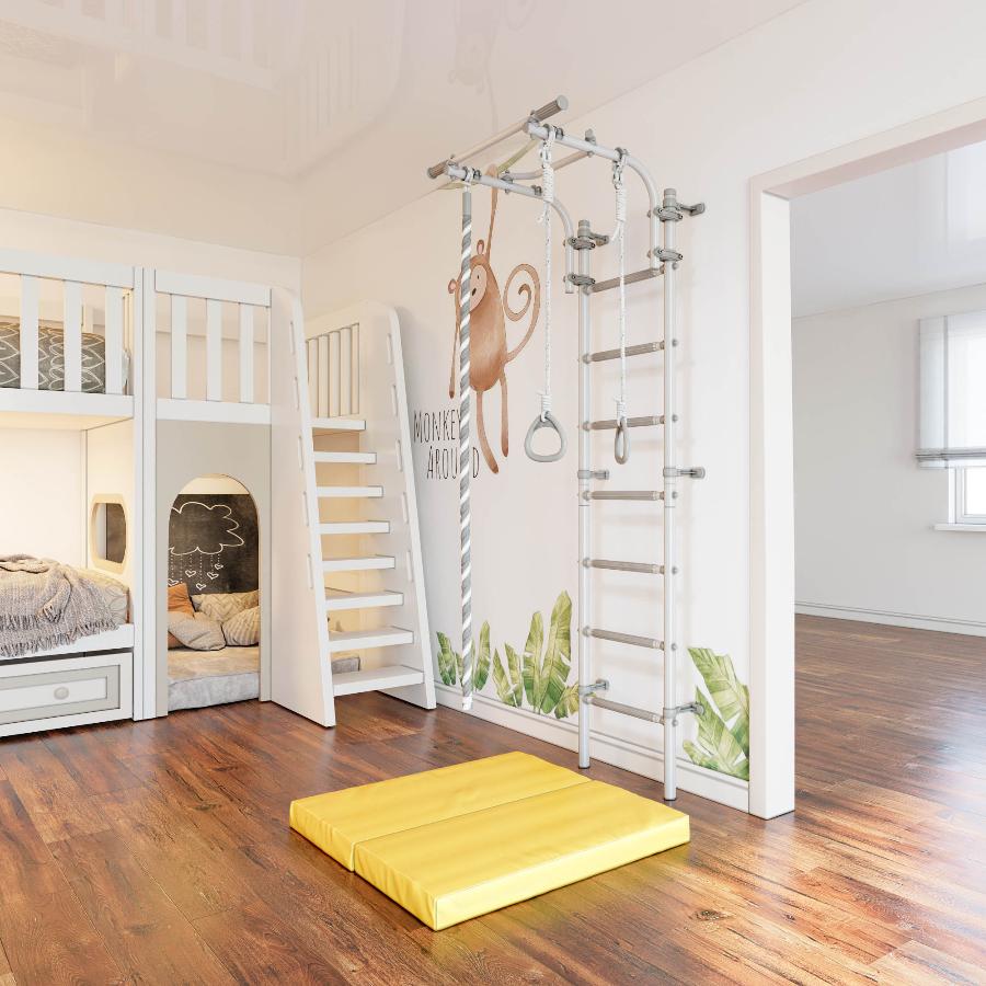 В комплексе Пристенный 4.4 предусмотрены массажные ступени, которые хорошо развивают моторику и служат профилактикой плоскостопия.